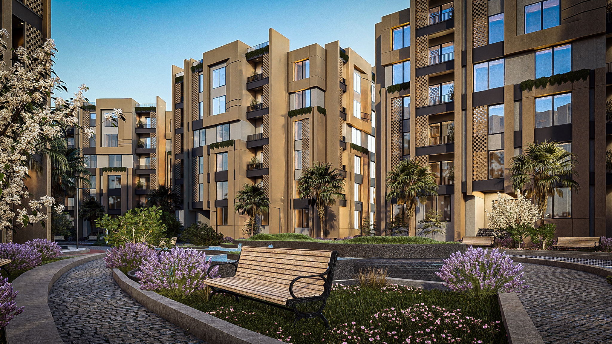 • The compound consists of luxurious modern buildings arranged in a semi-circular layout to provide stunning views for all units.