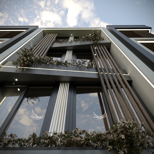 The building in the image exemplifies contemporary architectural sophistication, seamlessly blending aesthetic harmony, functional efficiency, and environmental integration. The design is characterized by clean, linear geometry and a well-balanced composition that enhances the façade’s visual appeal.