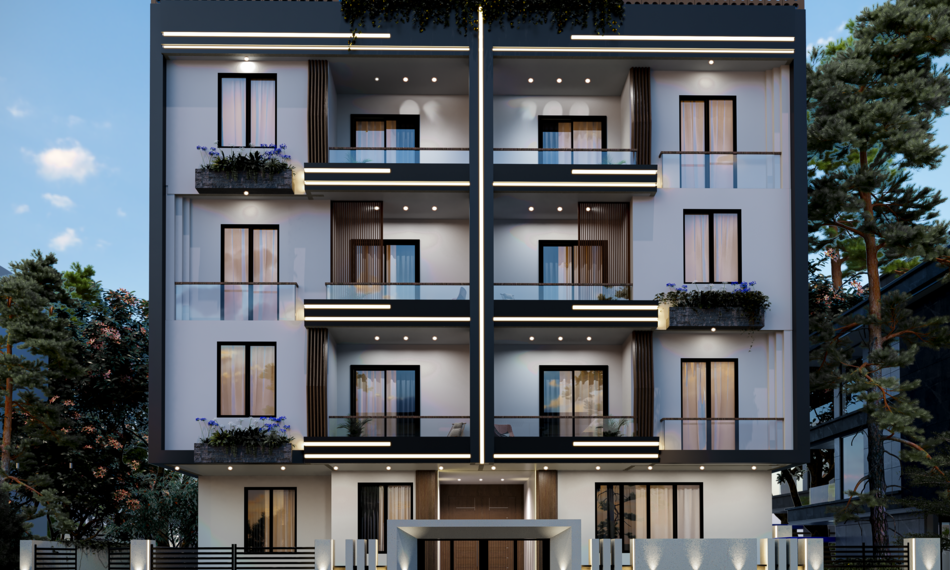- Elegant Balconies with Open Views: The minimalist balconies, featuring glass railings, reinforce the contemporary character of the building while enhancing the connection to the surrounding environment.