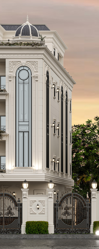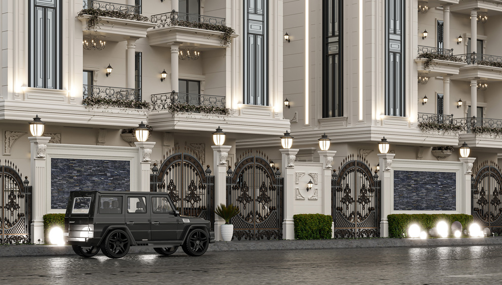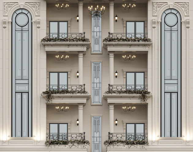 - Exquisite Classical Ornamentation: The façade is adorned with classical pilasters, ornate cornices, and intricate moldings, emphasizing depth, refinement, and historical elegance.